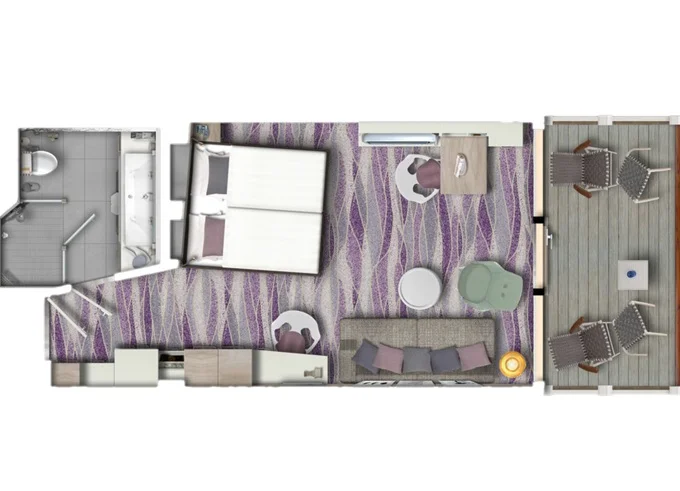 | JKAO - Junior Suite s balkónom 26 m² + balkón 7 m² so stolom. . paluba. Max 4 osoby. Výhody Junior Suite. | 11 498 € 5 749 € za osobu | ||